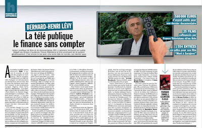 Télévisions et Arte, grands mécènes du cinéaste Bernard-Henri Lévy », complète le propos avec le tableau ses films écrits et