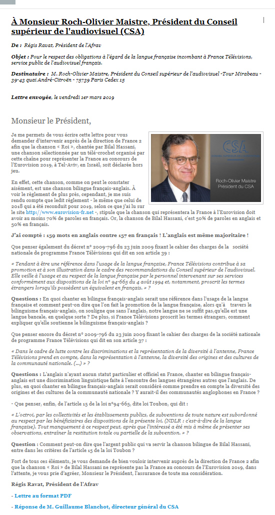 Pourtant, ni l’ex-Orange, ni son ex-dircab, ni le directeur de l’information, ni le comité de direction de l’entreprise et quelques autres thuriféraires n’ont décidé de s’y conformer et ont même choisi délibérément de méconnaître cet article fondamental du cahier des charges de l’entreprise publique ayant mission de service public en charge de La Défense et de la promotion de la langue française.